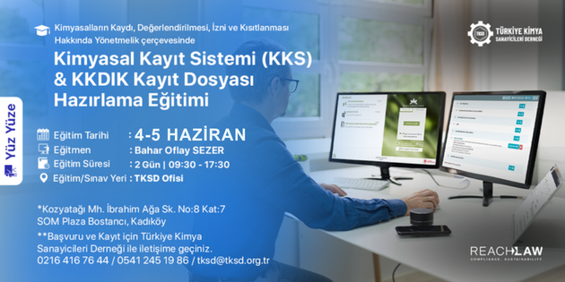 Türkiye Kimya Sanayicileri Derneği (TKSD) ile REACHLaw arasında, kısaca "KKDİK Yönetmeliği" olarak adlandırılan Kimyasalların Kaydı, Değerlendirilmesi, İzni ve Kısıtlanması Hakkındaki Yönetmeliği'nin aşağıdaki temel yönlerine odaklanan iki günlük kapsamlı bir yüz yüze eğitim sağlamak üzere iş birliği yaptığını duyurmaktan mutluluk duyuyoruz: